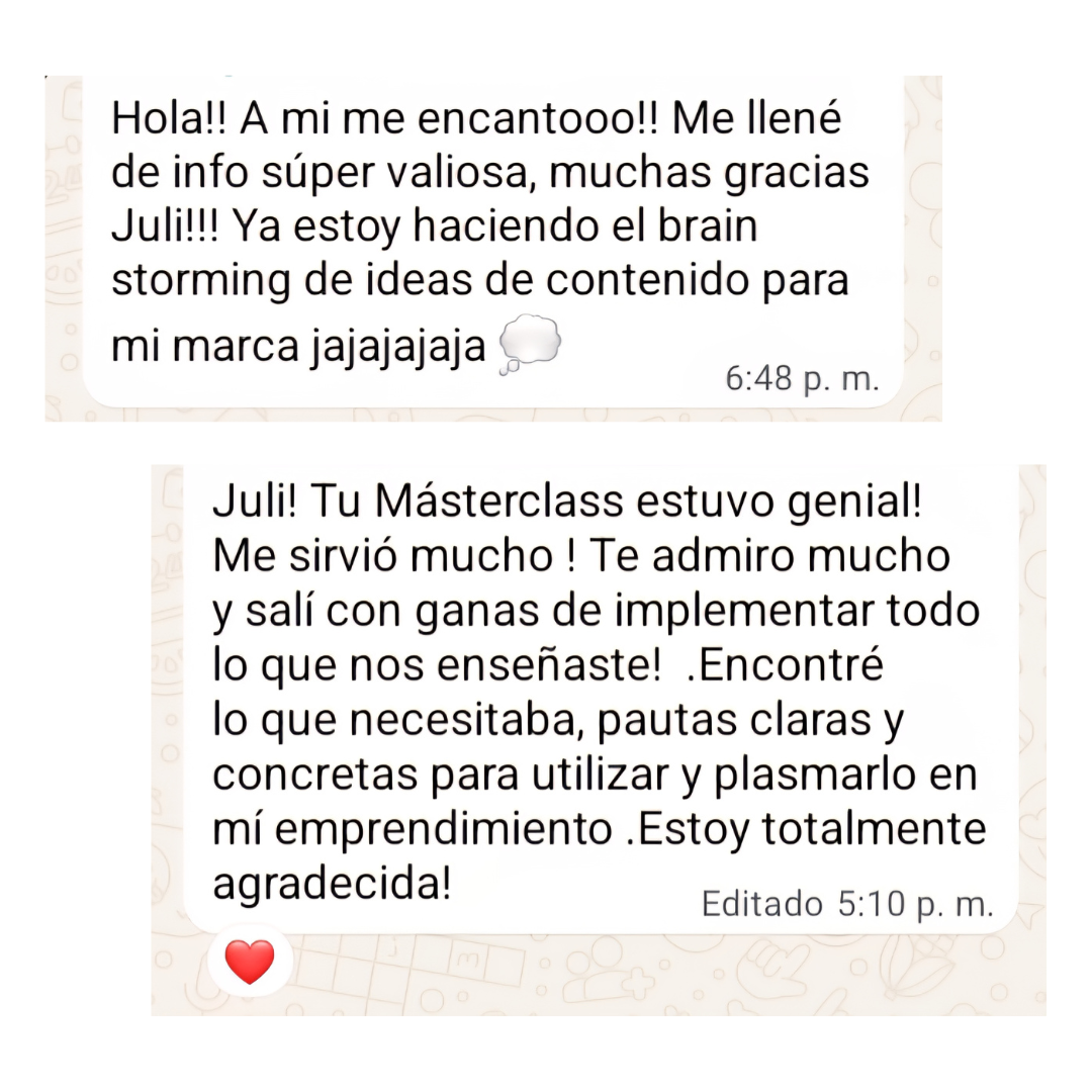 En esta MASTERCLASS voy a brindarte consejos desde mi experiencia creando contenido para mi marca y para otras, y a contarte varias cosas que me sirven a la hora de crear contenido.